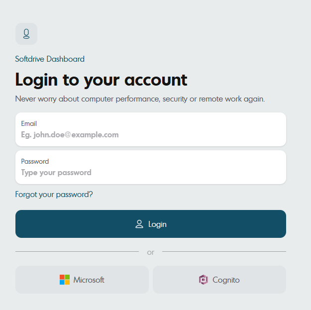 Once logged in, you will be directed to your Dashboard, where you can see the Softdrive machines assigned to you. The dashboard also includes three main sections: