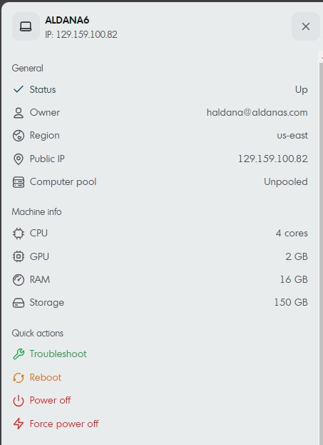 Clicking the Computer tab in the dashboard will display your assigned machines. Each computer object shows: