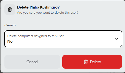 If your users are not being synced via Microsoft Entra, you can delete users directly from the dashboard.