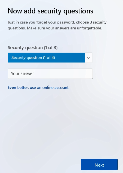 Set up your security questions.