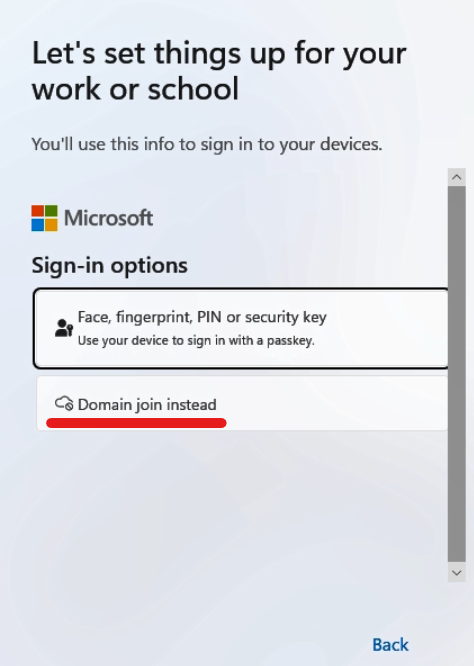 Choose Sign-in options → Domain joined instead.