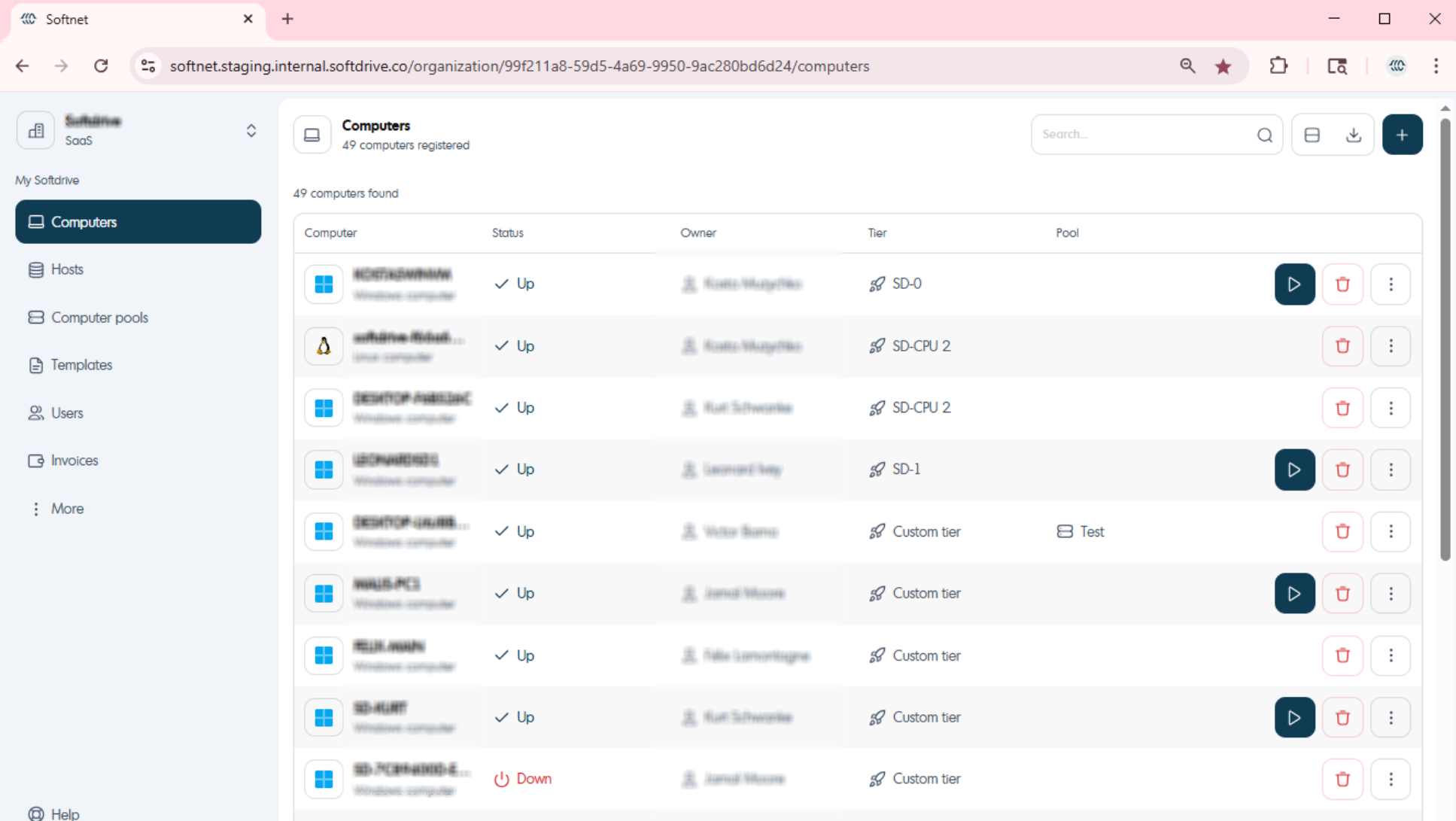 Administrators can successfully view, create, manage, and delete computers within the Softdrive dashboard.