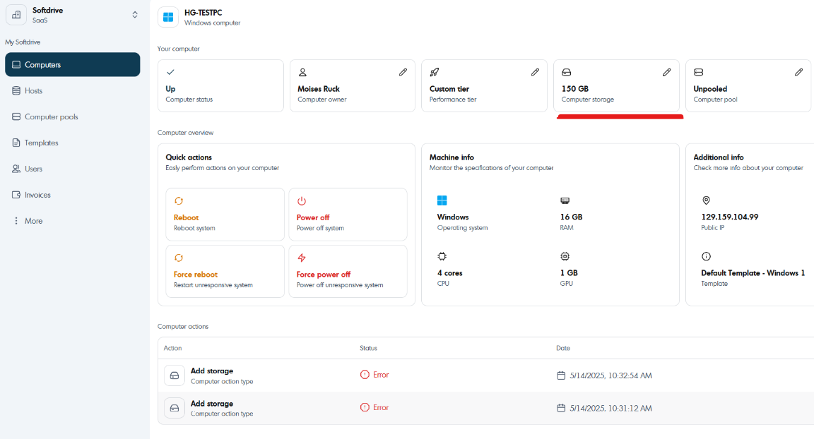 2. Navigate to the computers tab and search for the computer that needs more storage. Then click on it.