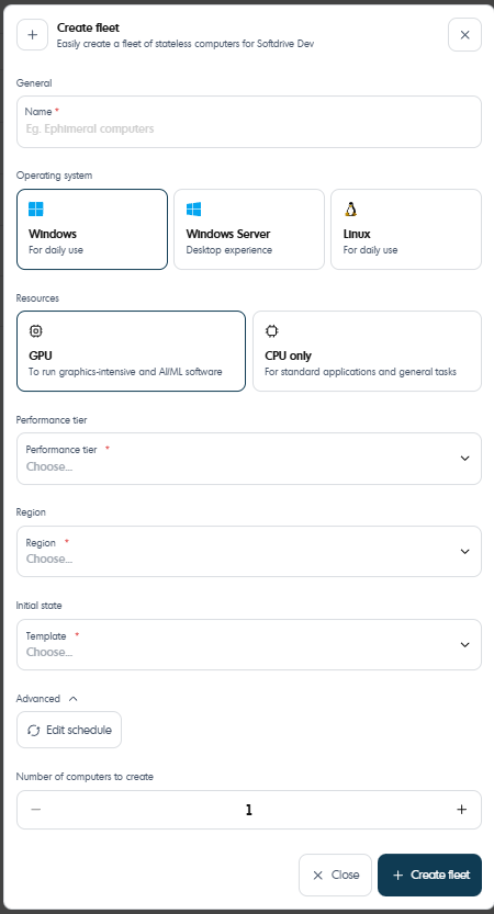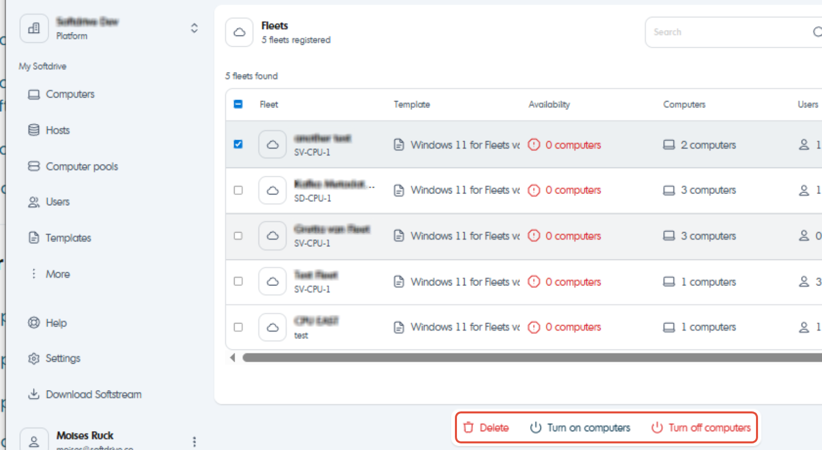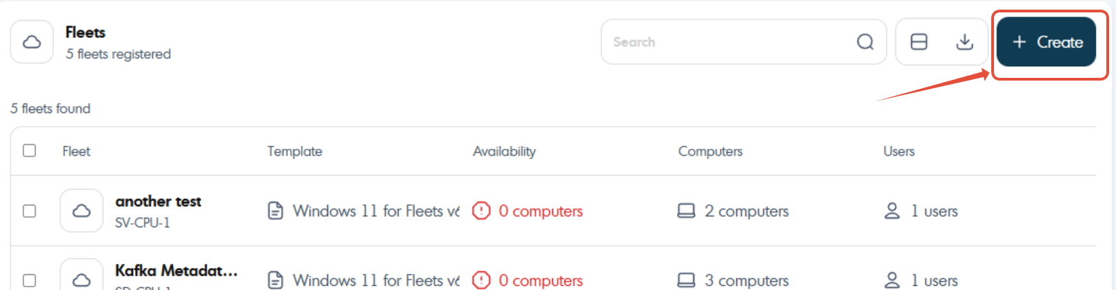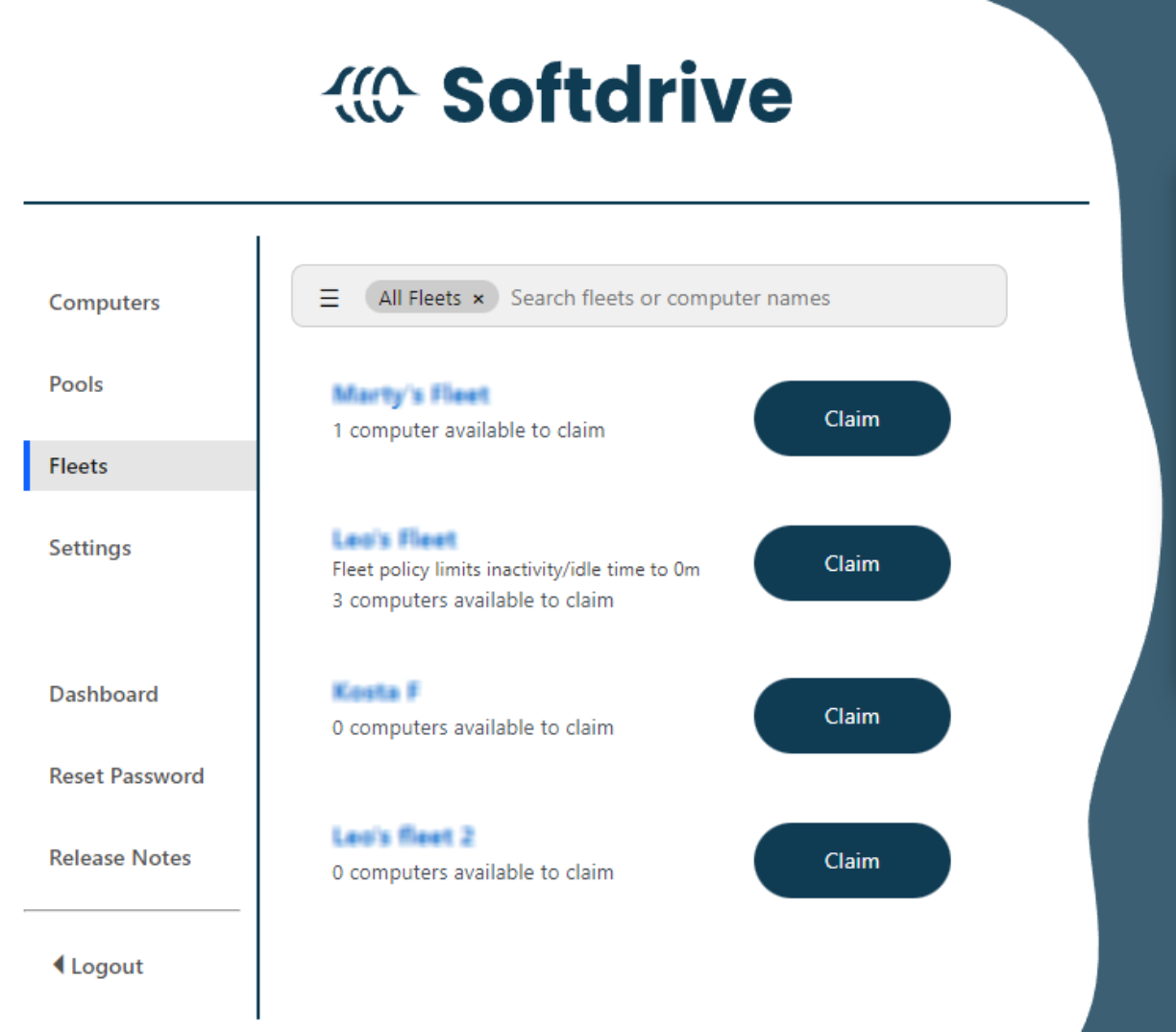 From the launcher, end users will have access to a Fleets section, where they can view all available computer fleets. Each fleet will display the number of computers currently available and provide an option to “CLAIM” a computer to begin using it.