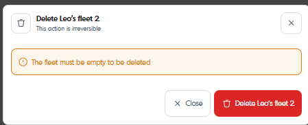 By pressing the delete button a fleet can be deleted (make sure all computers within the fleet are deleted before deleting the fleet)