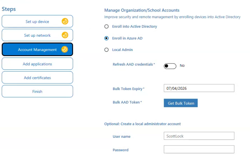 Enable Azure AD Join to automatically join the device to your tenant.