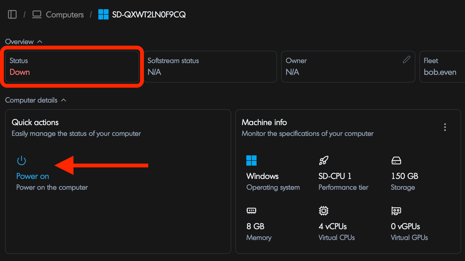 - If the computer is powered off, click Power On.